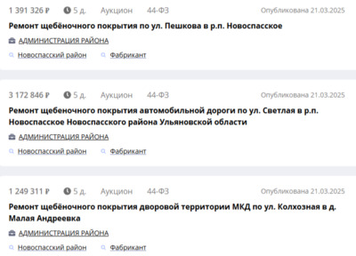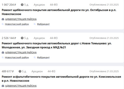 Причём, обратите внимание, есть тендеры с довольно приличными суммами от 1,5 до 3 млн. рублей.