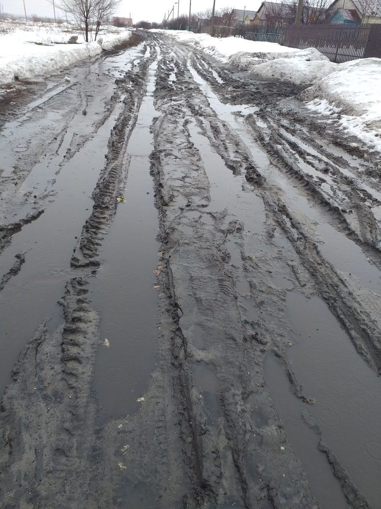"Здравствуйте я житель Нового Томышово! Я много читал ваши статьи насчёт дорог. У меня просто на кипело! Хочу вам рассказать и показать! Посмотрите, как наши дети ходят по уши в грязи! Наши старики не могут выйти из дома, что у нас такие прекрасные дороги!!! В простых сапогах тут не пройдешь! Тут нужны болотные сапоги! Скорая иной раз не может проехать из-за таких котловин!! Всем плевать никому нет дела! Порой дома сносят весенние паводки, а никому нет дела!