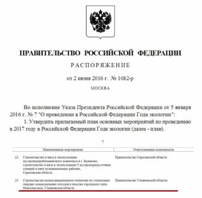 Постановлением Правительства РФ утверждено строительство Новоспасского полигона по утилизации твердых бытовых отходов.