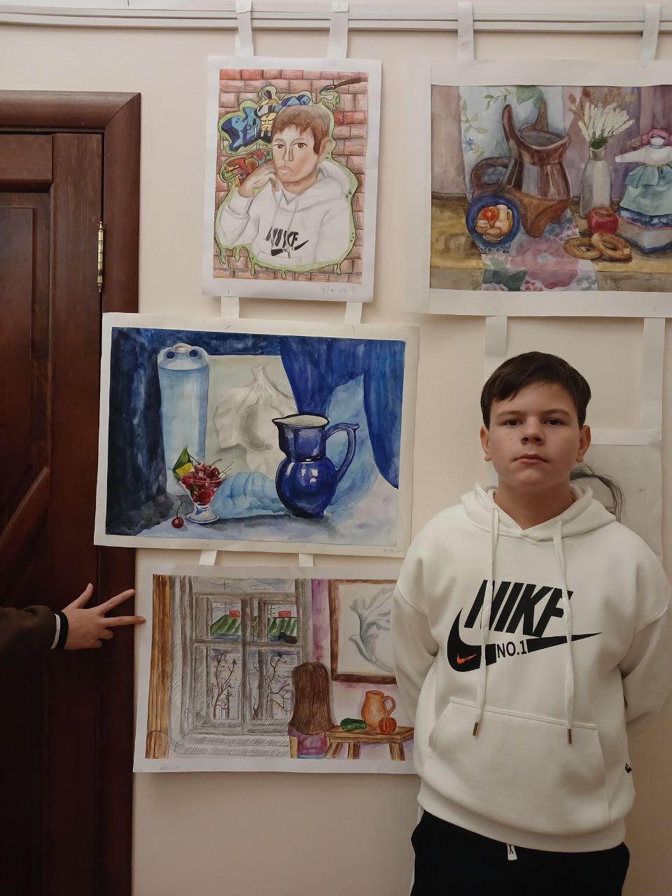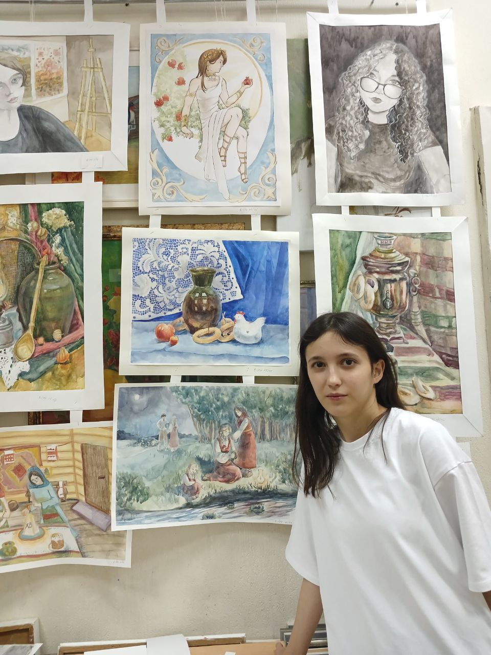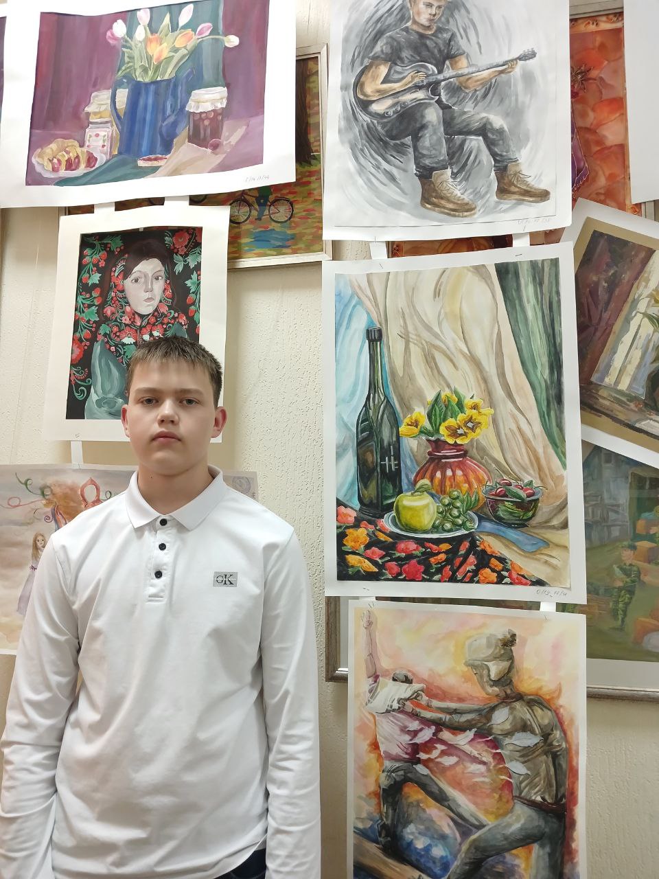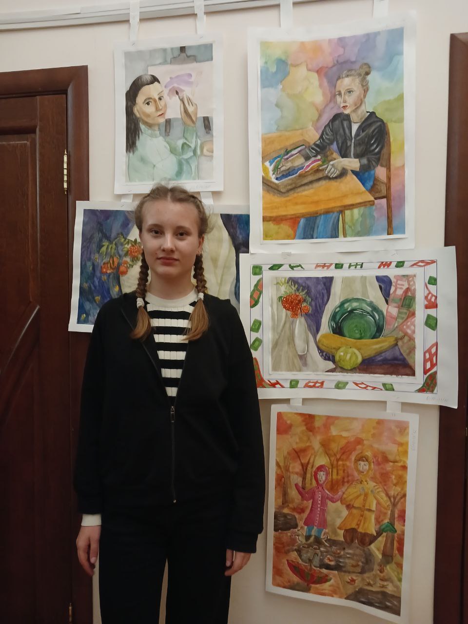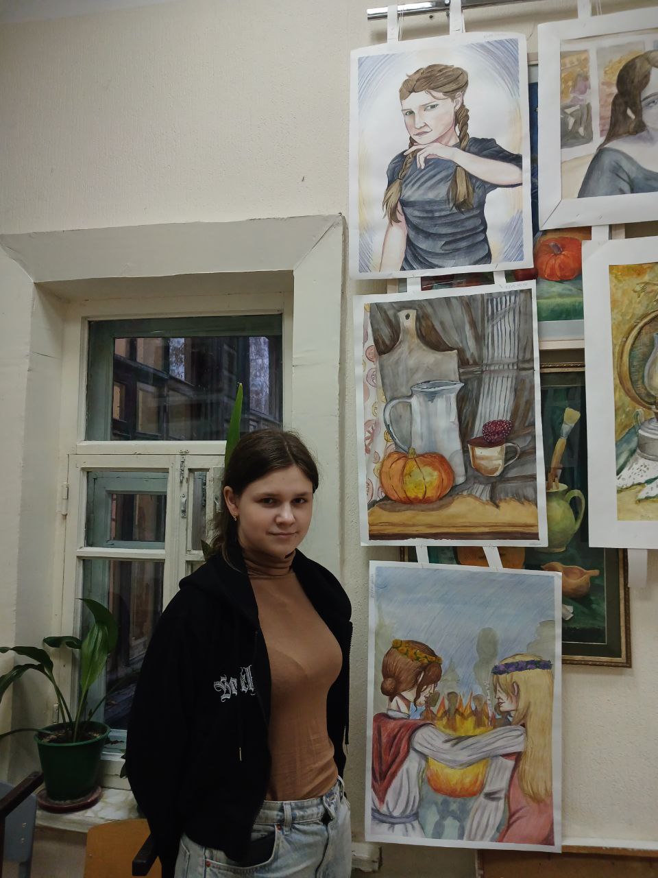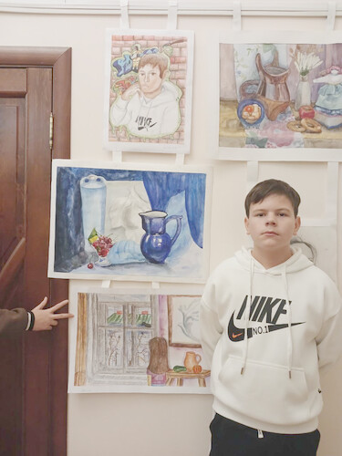 В жёсткой конкуренции по итогам домашнего задания (автопортрет и натюрморт) и выполнения станковой композиции по теме "Краски осени" (младшая группа), "Национальные традиции и праздники" (старшая):