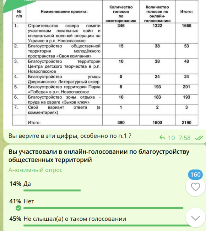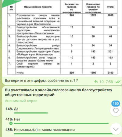 На наш комментарий по этому поводу, представитель администрации заявил, что цифры якобы реальные, голосование проводилось в ВК, и сомнений нет в достоверности данных.