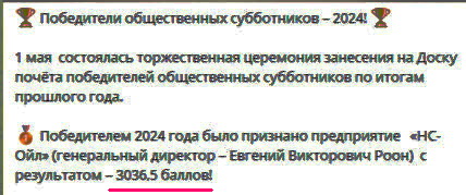 Но мало того, что баллы, так ещё, оказывается, в десятых как-то вычисляют (зря не в тысячных). Представляете себе 3036,5 баллов НС-Ойл набрал?