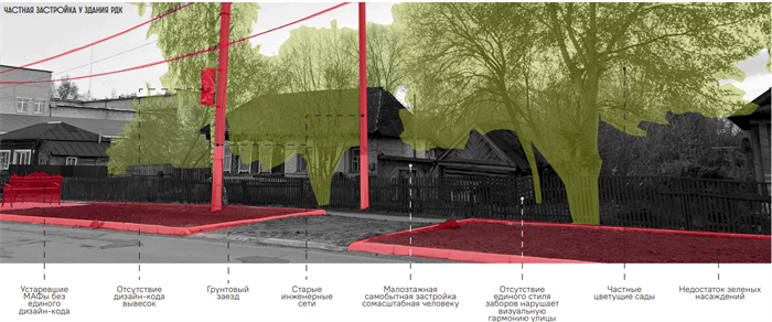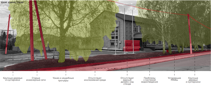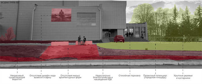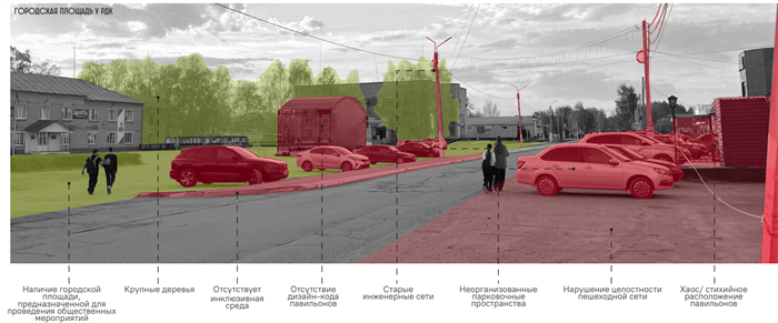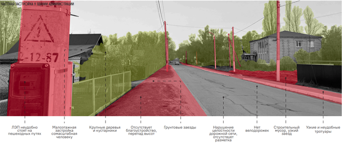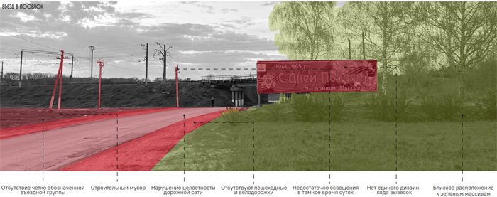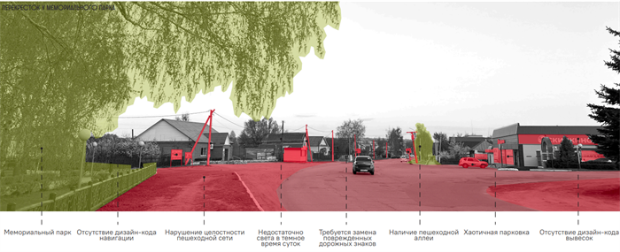 Кроме того, по мнению авторов проекта, в поселке не отработан вопрос навигации, отсутствует единый дизайн-код фасадов и вывесок.