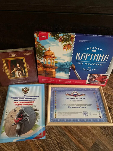 Учащаяся художественного отделения Новоспасской ДШИ Косолапова Злата получила диплом лауреата за особое отличие, подарок, в том числе памятный альбом конкурсных работ.