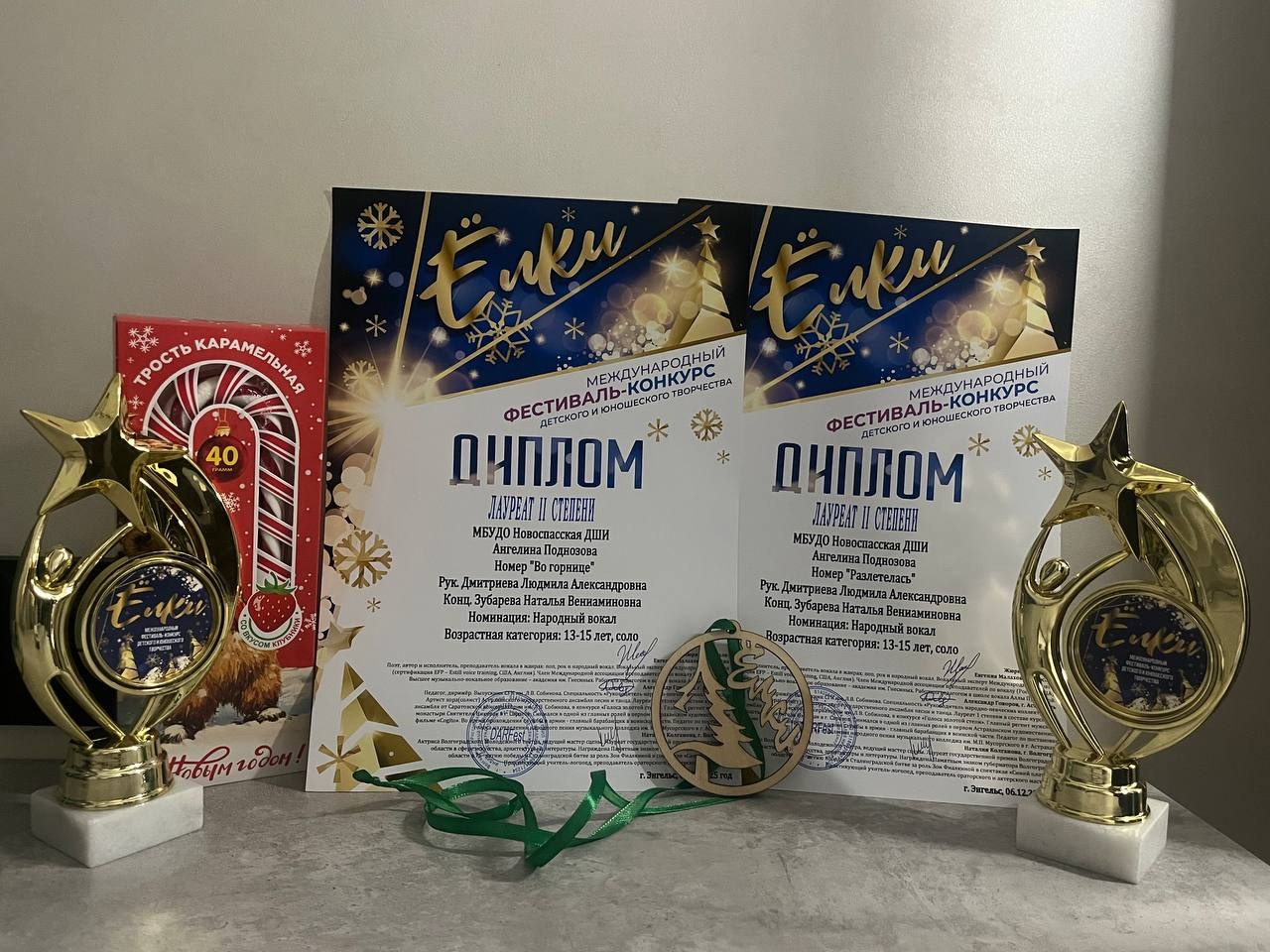 "С огромным волнением хочу поделиться опытом участия в незабываемом конкурсе с новогодним названием "Ёлки". Это событие стало для меня испытанием и одновременно источником вдохновения, - делится Ангелина. - Особую благодарность хочу выразить Людмиле Александровне, Наталье Вениаминовне, моим любимым родителям и всем, кто поддерживает меня"