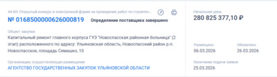 Согласно конкурсной документации, подрядчику предстоит капитально отремонтировать фасад, кровлю, системы отопления и вентиляции, лечебного газоснабжения и кислородоснабжения, водоснабжения и электроснабжения, заменить канализацию, а также провести ремонт отмостки и благоустройство территории.