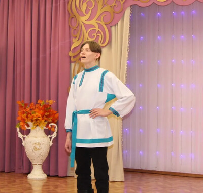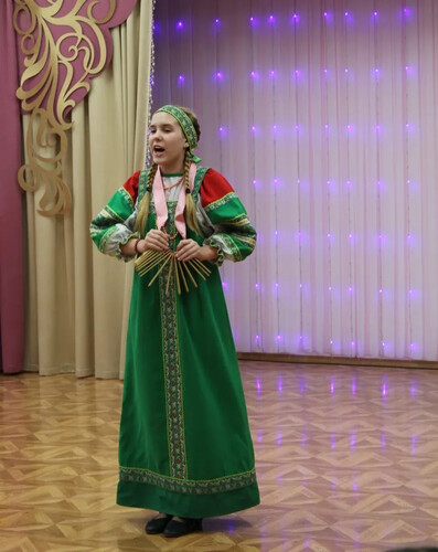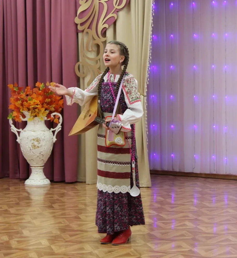 Анастасия Ермакова исполнила сказку в фольклорном стиле "Каша с медом или Как дед к медведю за мёдом ходил".