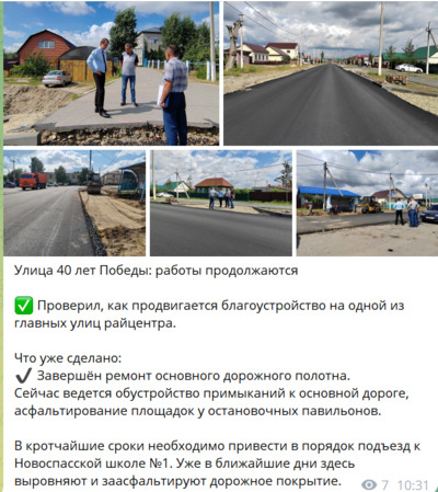 Бесполезно уже взывать к совести и здравому смыслу, людей, которым видимо это несвойственно. с середины мая одна из важных магистральных улиц посёлка так и не введена в эксплуатацию. Каких-то 800 с небольшим метров три месяца волокитят, и только лозунги размещают в сети.
