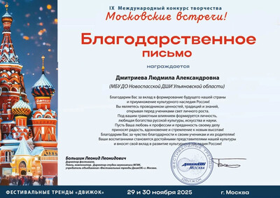 Анастасия приняла участие в МЕЖДУНАРОДНОМ КОНКУРСЕ-ФЕСТИВАЛЕ "Московские встречи"