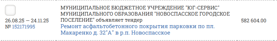 Очевидно, что тогда не нашлись желающие получить за работу без малого 600 тысяч рублей (582 604,00). Появятся ли таковые сейчас, будет ясно после 24.11.25 года.