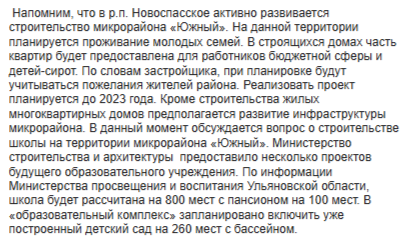 Но, как мы уже знаем, ни сказочный лицей, ни первая очередь "Новограда", в 2023 году не вошли в действие. Более того, строительство лицея началось только в апреле 2023 года, а срок окончания значился ноябрь 2024 года.