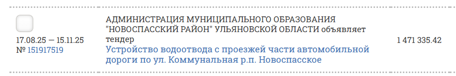А вот желающих на устройство водоотвода с проезжей части автомобильной дороги по ул. Коммунальная не находится, в третий раз даётся объявление на тендер.