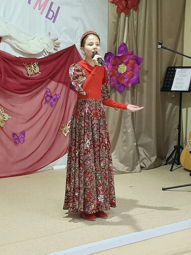 Ермакова Анастасия, учащаяся вокального отделения Новоспасской ДШИ, украсила своими номерами концерт "Счастливые глаза моей мамы" состоявшийся в деревне Малая Андреевка.