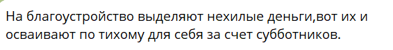 И ещё, у многих жителей об этих субботниках складывается такое мнение, для чего и почему они проводятся: