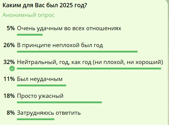 И последняя треть - назвали 2025 год обычным, заурядным, ничем не выдающимся по отношению к другим годам.