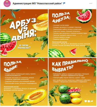 Вот чем, во всяком такая информация размещена на официальных страницах... Во всяком случае создаётся такое ощущение, прочитав сей их пост. Кстати, подобных материалов, на страницах соцсетей администрации можно частенько наблюдать. Уж не знаем, с какой целью они публикуются, вроде бы всё-таки не научно- познавательный контент у администрации должен быть: ни газета, ни журнал, а официальный орган власти, соответственно и публикации должны быть соответствующие. При чём тут арбузы?