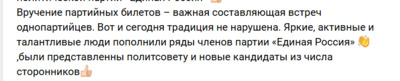 В конце 2025 года, партийный бомонд известной партии в котором приняли участие и представители исполнительной власти района, а так же сельских поселений, устроил выдачу партийных билетов в рабочее время.