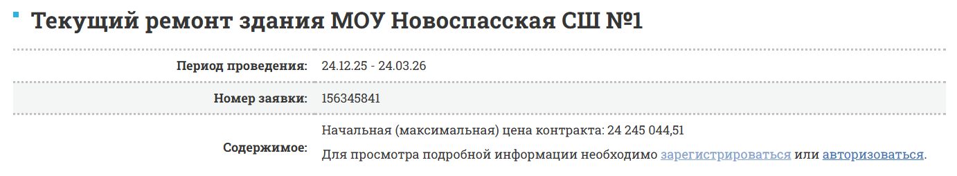 А также повторно объявлен тендер на текущий ремонт Новоспасской средней школы № 1.