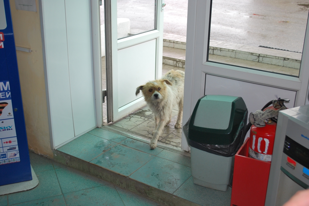 | Бездомный пёс с очень добрыми глазами.... P.S. поделился обедом).