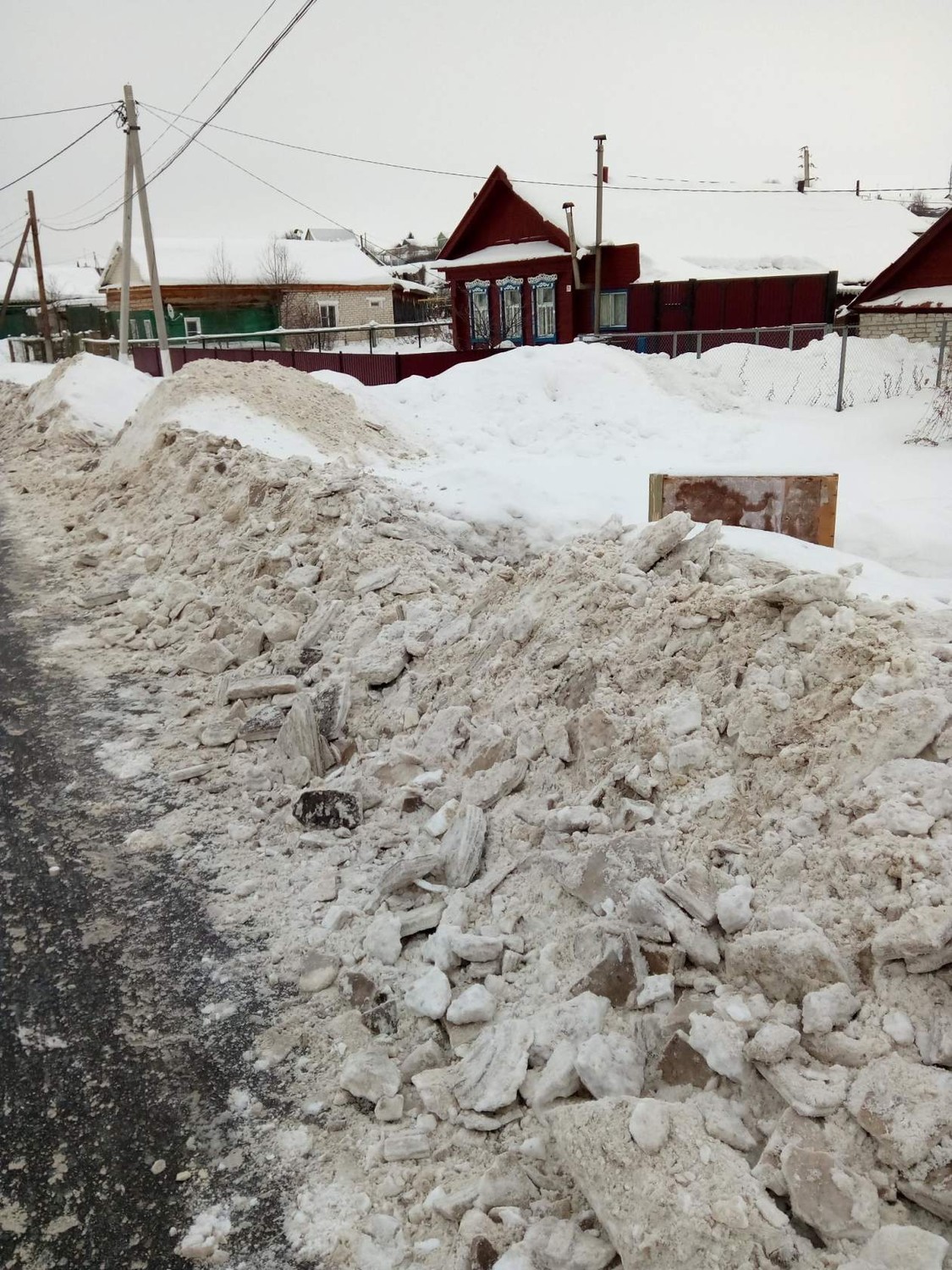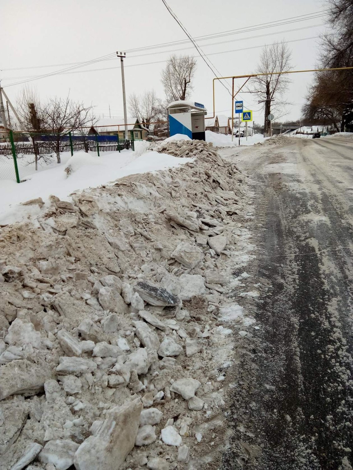 Нам рассказывает одна из жительниц посёлка: "Вот у нас на улице Советская, в районе Новоспасскавтотранс, все чистят на участки людей, что нельзя эти глыбы снега и льда перелезть,