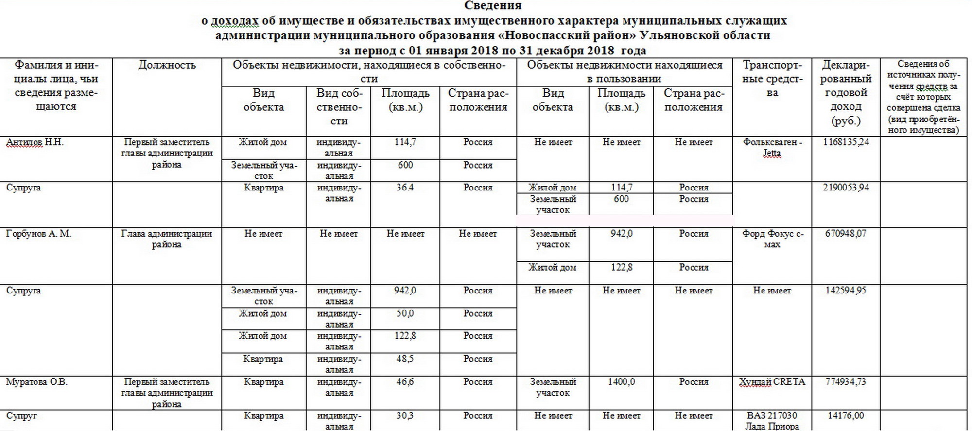 Опубликованы "Сведения о доходах об имуществе и обязательствах имущественного характера муниципальных служащих администрации муниципального образования «Новоспасский район» Ульяновской области за период с 01 января 2018 по 31 декабря 2018 года".