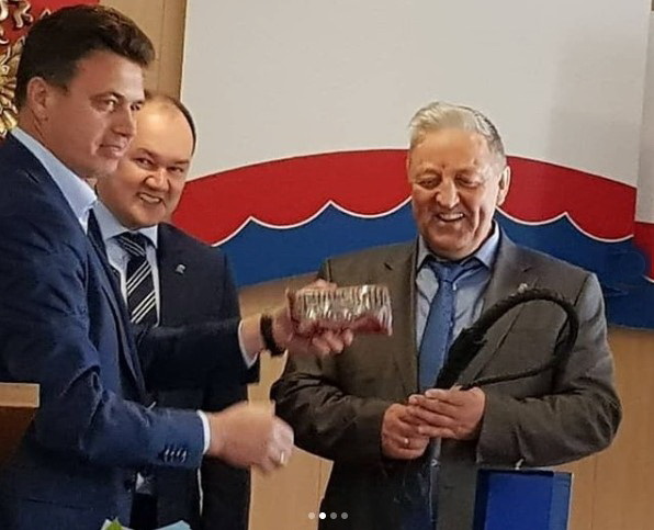"Руководить строго, но справедливо" пожелали новому главе администрации "старшие" коллеги, символично вручив Горбунову кнут и пряник: