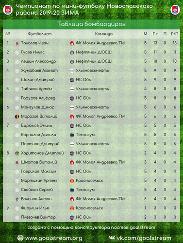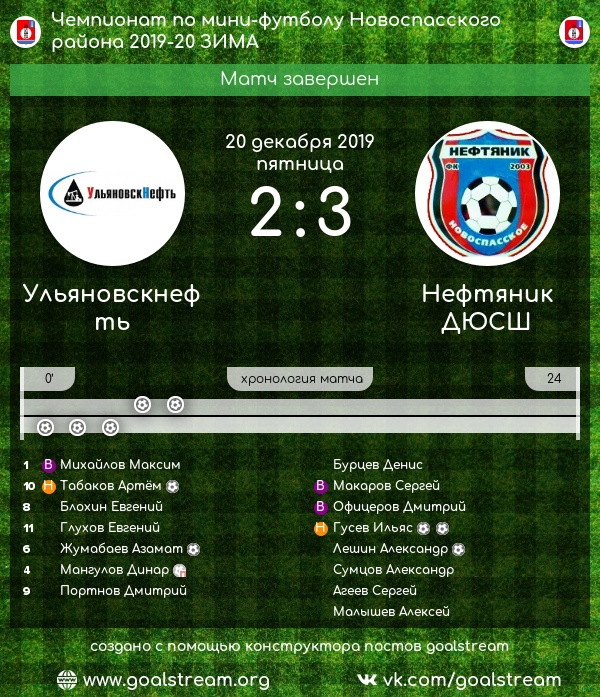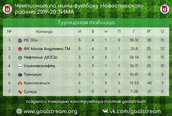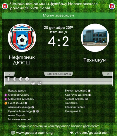17:15 Чемпионат Новоспасского района по мини-футболу |