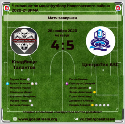 Главная » 2020 » Ноябрь » 28 » Чемпионат по мини-футболу Новоспасского района#2020-21 ЗИМА
