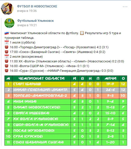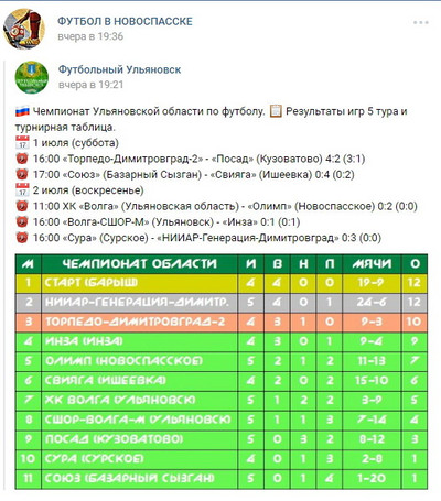 Главная » 2017 » Июль » 3 » Чемпионат Ульяновской области по футболу. 5 тур.