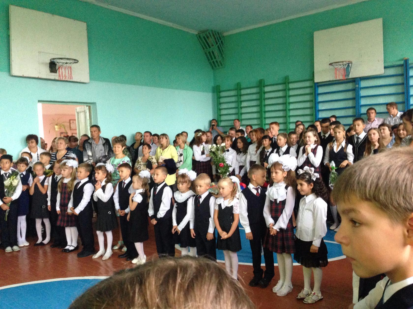 А вот администрация Новоспасской среднней школы № 1 решила не смотря на дождь провести торжественную линейку во дворе школы. Хотя в наличие имеется большой спортивный зал. Наверное первоклассникам этой школы надолго запомнится День знаний.