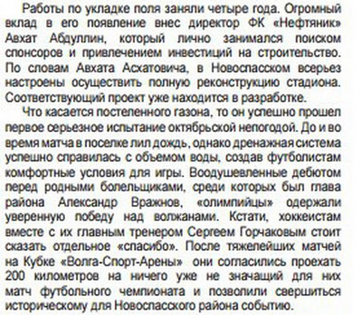 Главным событием заключительного тура стала игра в Новоспасском, где местная команда сыграла первый по-настоящему домашний матч на новом искусственном поле, который уже сейчас называют одним из лучших, если не самым лучшим в области.