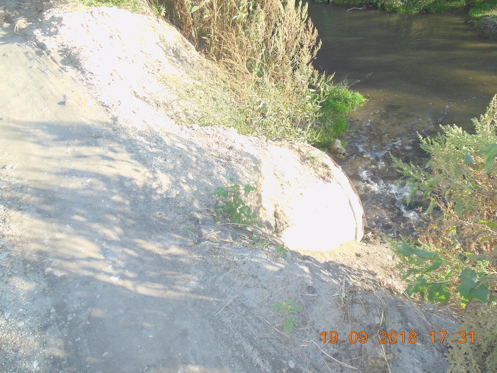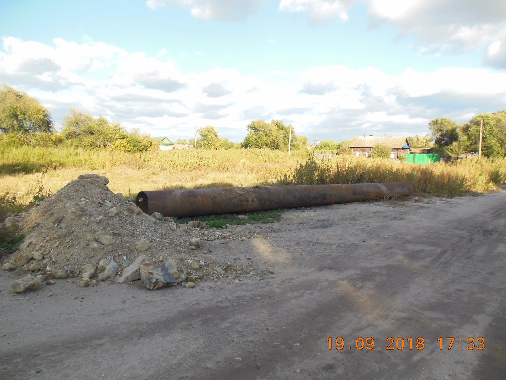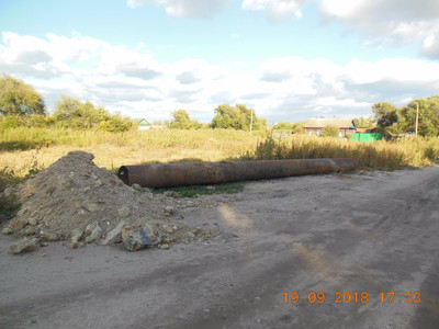 Как рассказали нам жители, две недели назад притащили откуда-то вот эту ржавую трубу, видимо это та третья, когда-то обещанная труба для увеличения водостока ручья, но вот так как бросили её, так и лежит до сих пор.