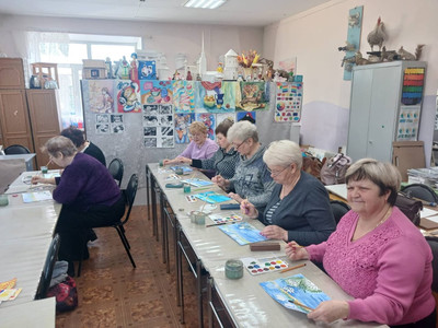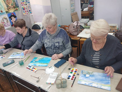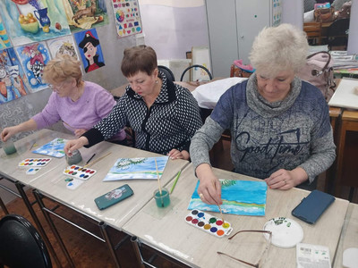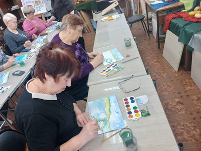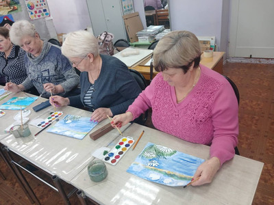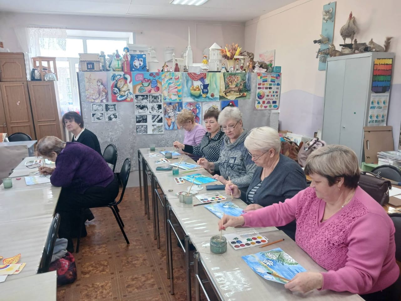 7 февраля Бадигина Татьяна Геннадьевна провела мастер-класс для группы участников Центра активного долголетия "Успех" по теме "Пейзаж с цветами".