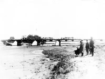 Конечно, до наших дней эти мосты не сохранились, но есть фото 1930 года, на котором запечатлён момент ремонта моста.