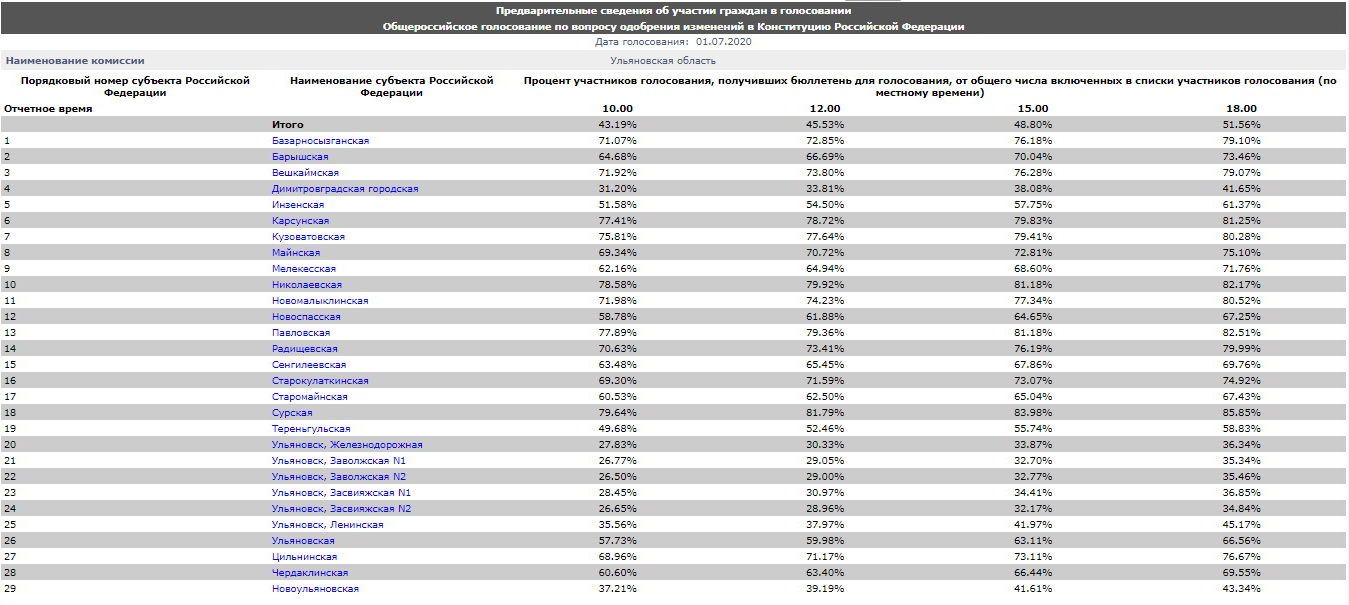 Публикуем данные по явке по состоянию на 18 часов. По району общий процент составил 67,25%, в разрезе УИК в таблице.