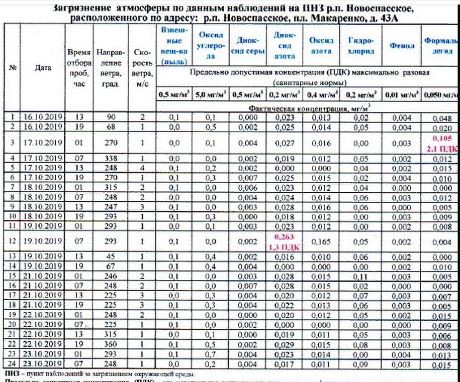 Об этом поведал очередной экологический бюллетень по наблюдению за атмосферным воздухом в р.п. Новоспасское за период с 16 по 23 октября.