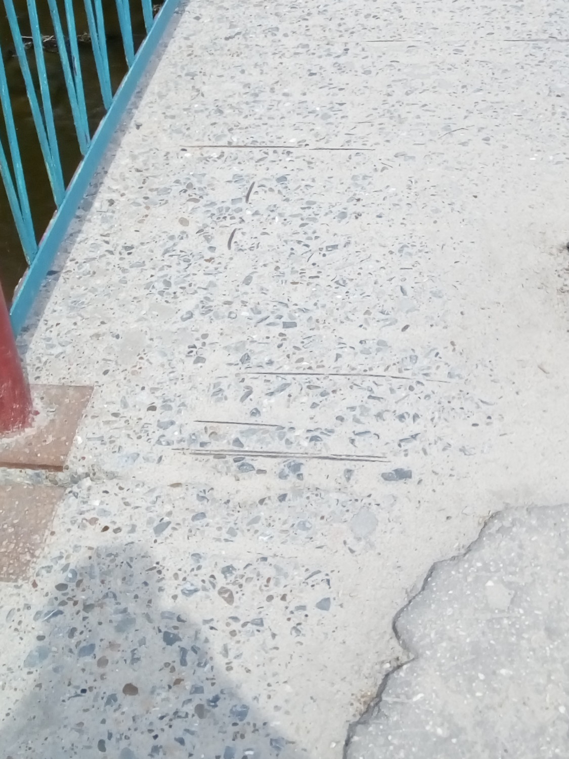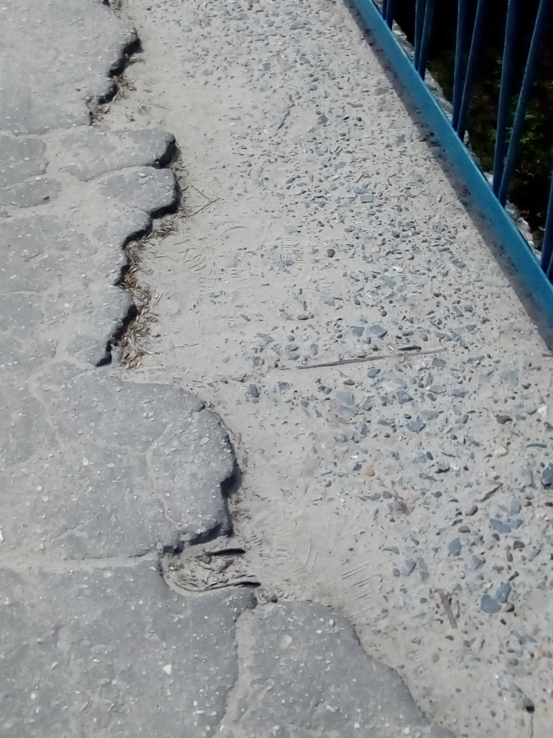 Отметим, что в целом состояние пешеходных зон моста от времени приходит в непригодное состояние: разрушается асфальтовое покрытие, а кое-где уже и железнобетонное основание моста - видна арматура.