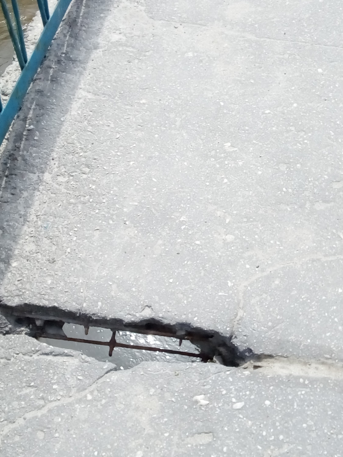 Особенно они переживают за учеников младших классов, так как появляющиеся дыры у пешеходных проходов моста могут стать причиной застревания ног, а то и их перелома.