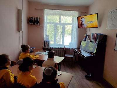 В классах Новоспасской школы искусств организованы кинопоказы о наших героях. Учащиеся посмотрели документальный фильм и познакомились с биографией и историей подвига.