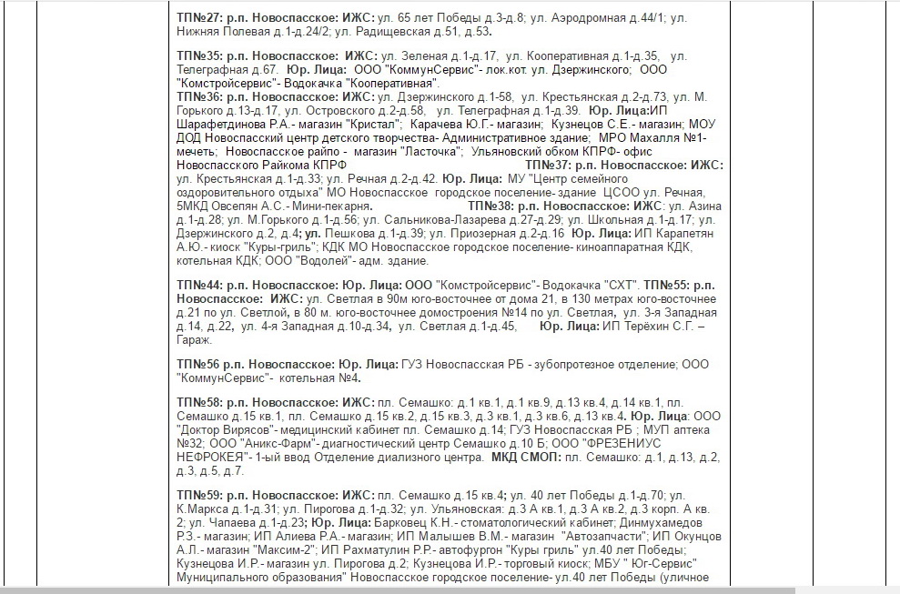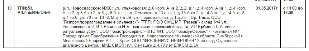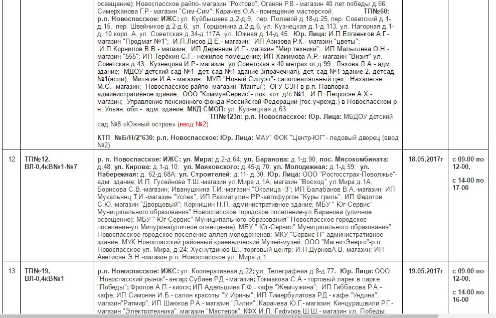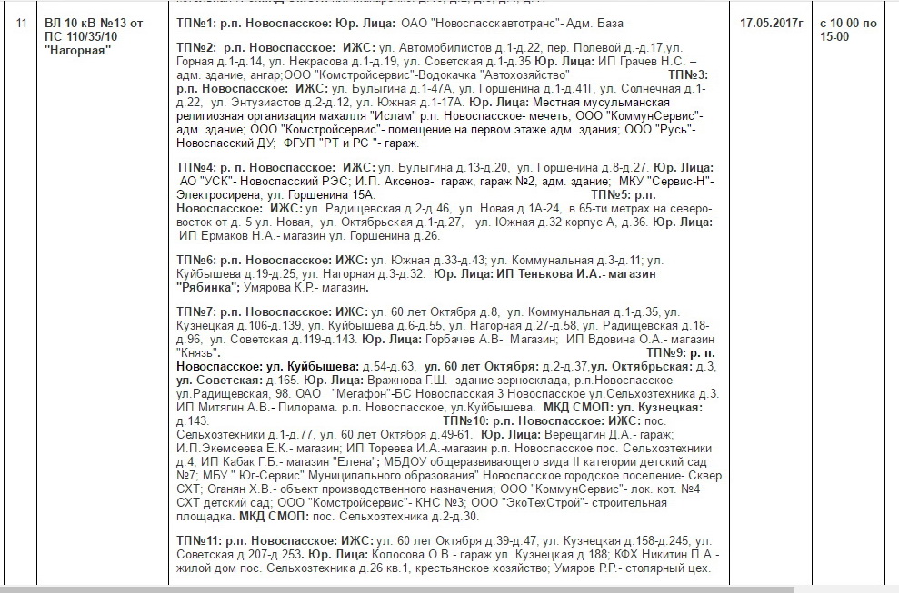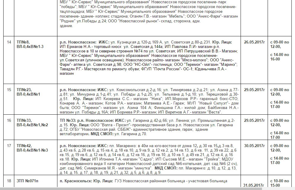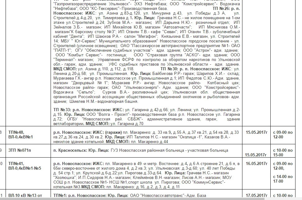 Планы ремонтов РЭС Новоспасского района для проведения ремонтных работ в мае месяце 2017 г.