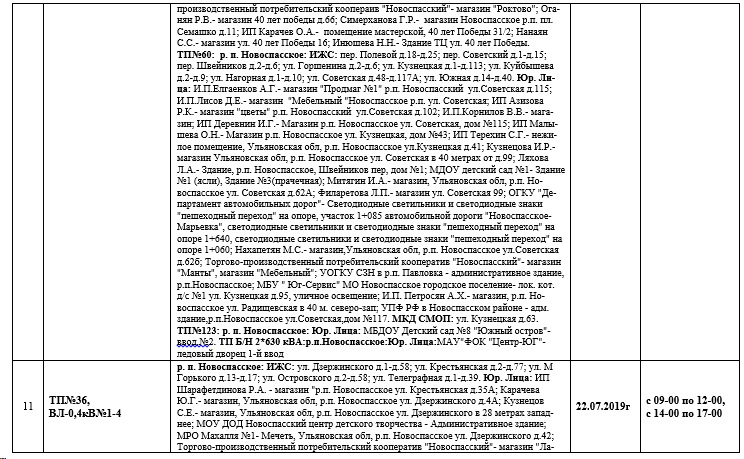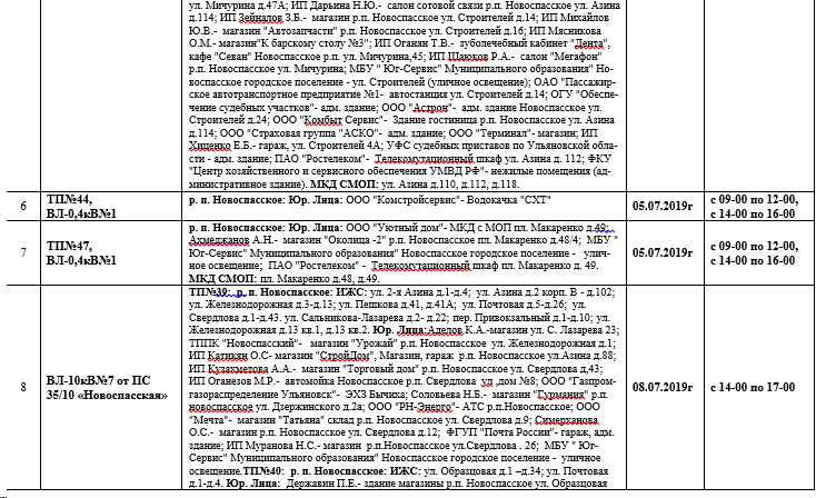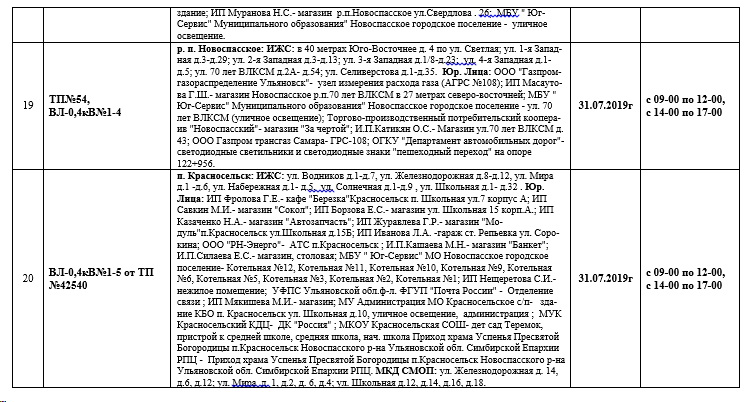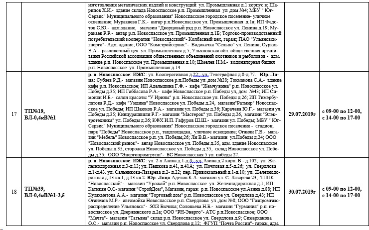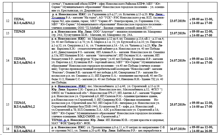 Планы ремонтов РЭС Новоспасского района для проведения ремонтных работ в июле месяце 2019 года.