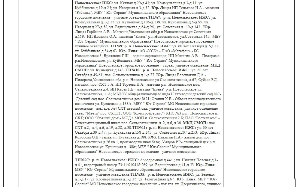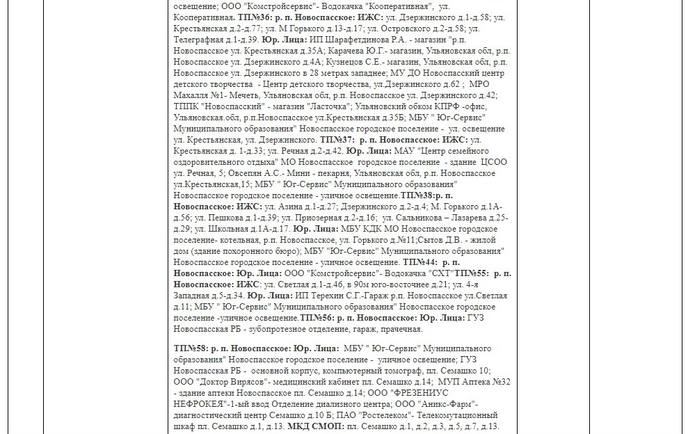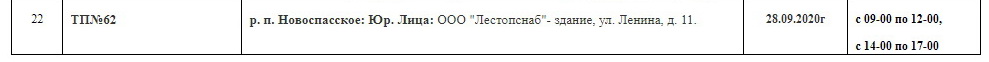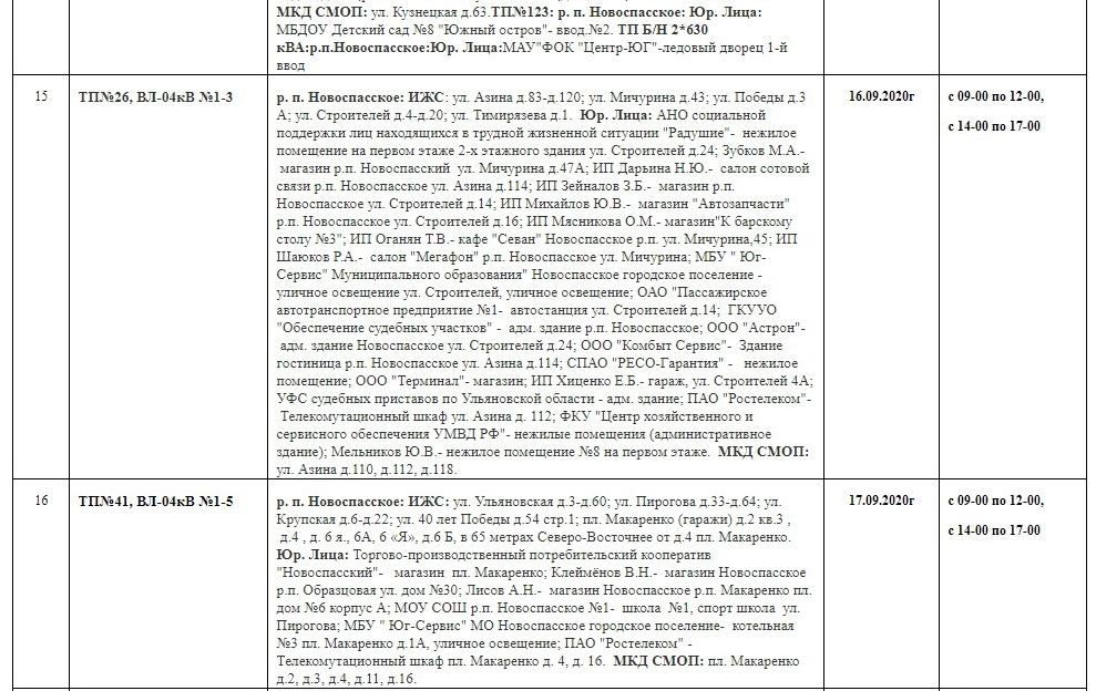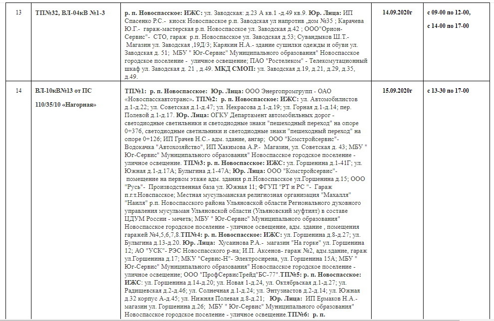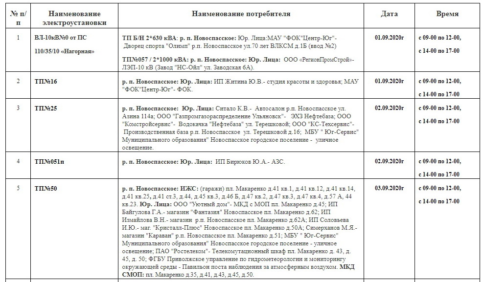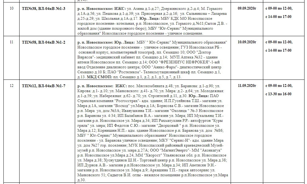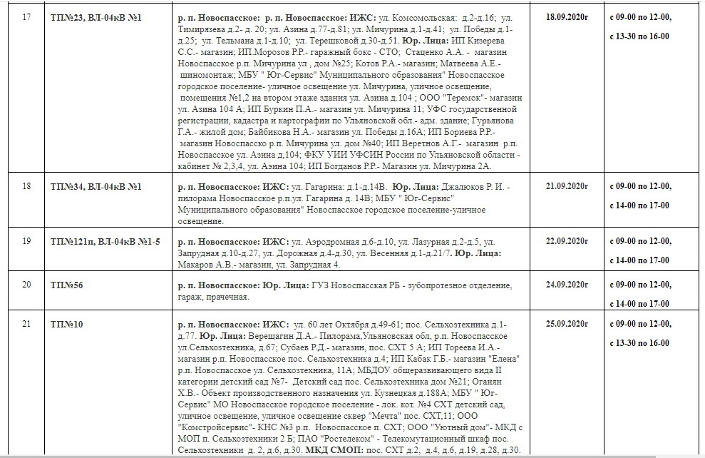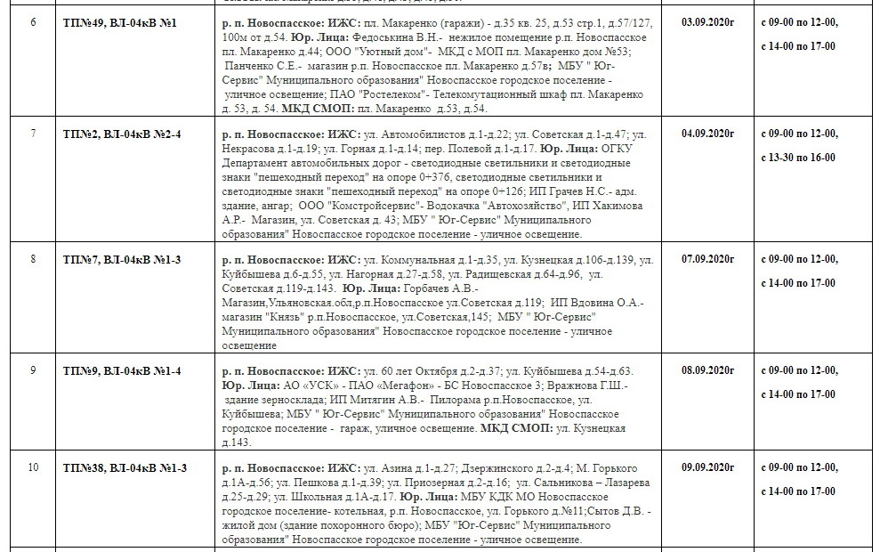 Планы ремонтов РЭС Новоспасского района для проведения ремонтных работ в сентябре месяце 2020 года
