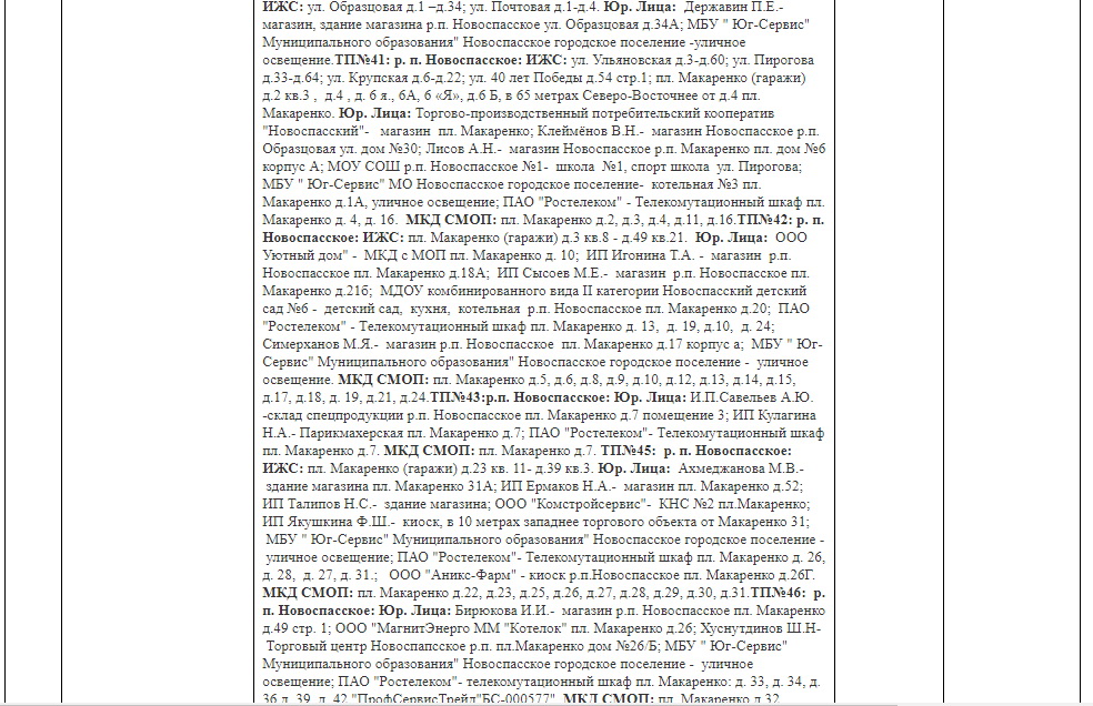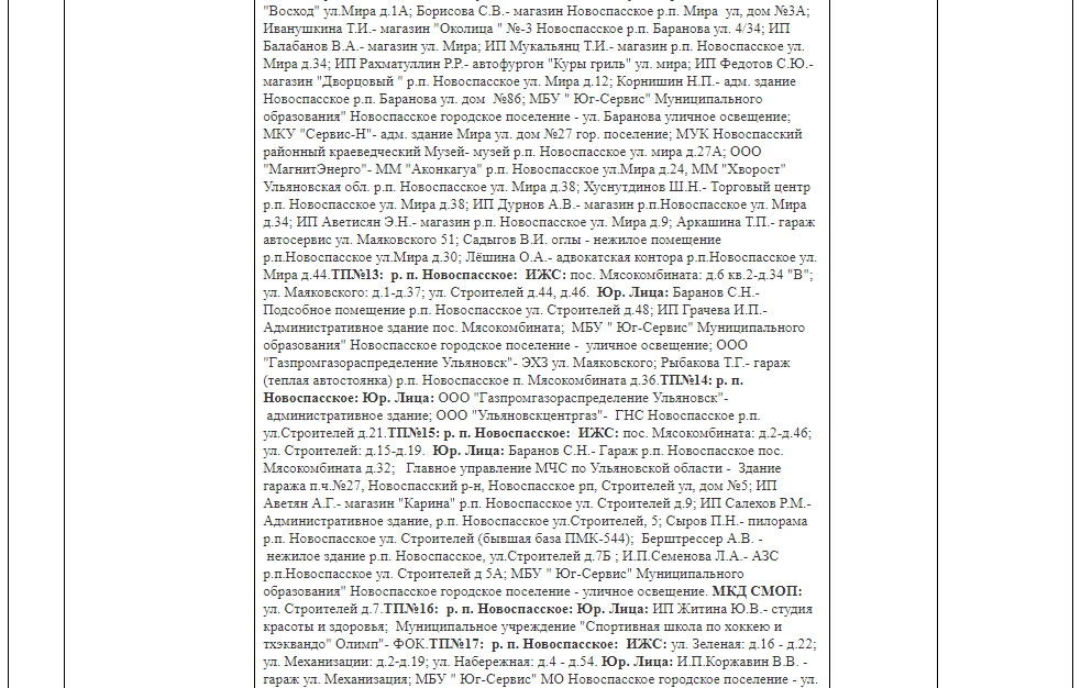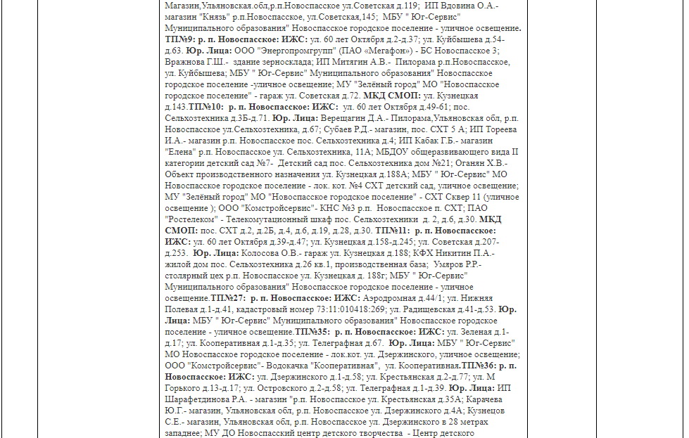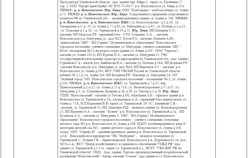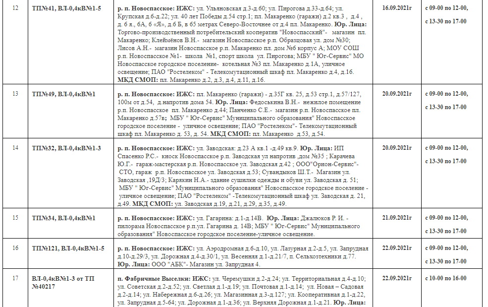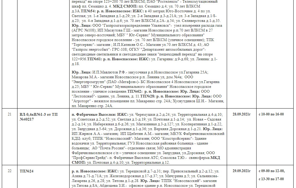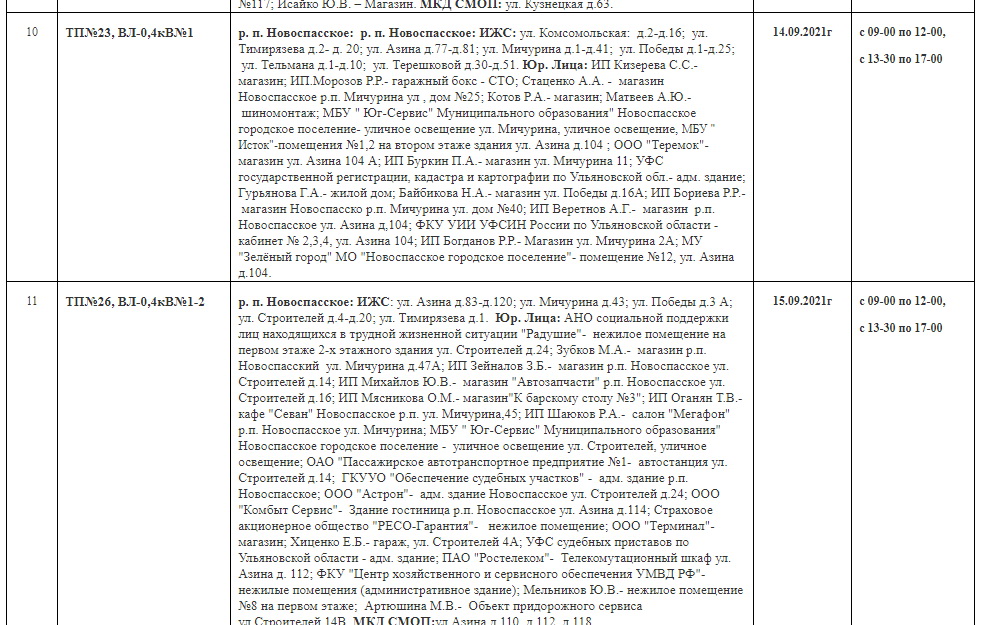 Планы ремонтов РЭС Новоспасского района для проведения ремонтных работ в сентябре месяце 2021 г.