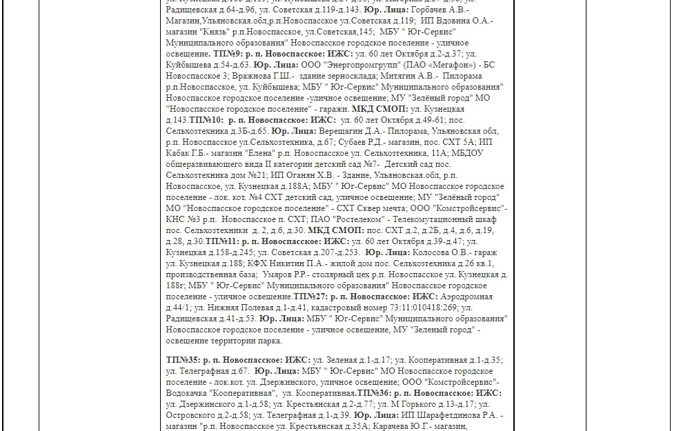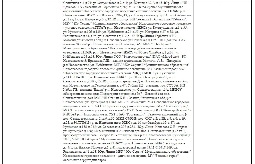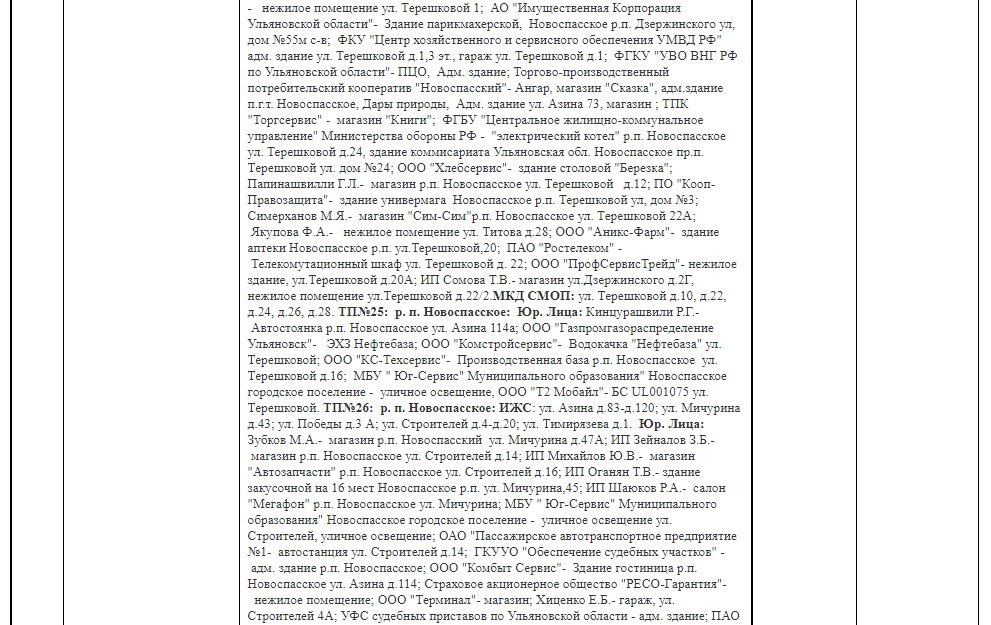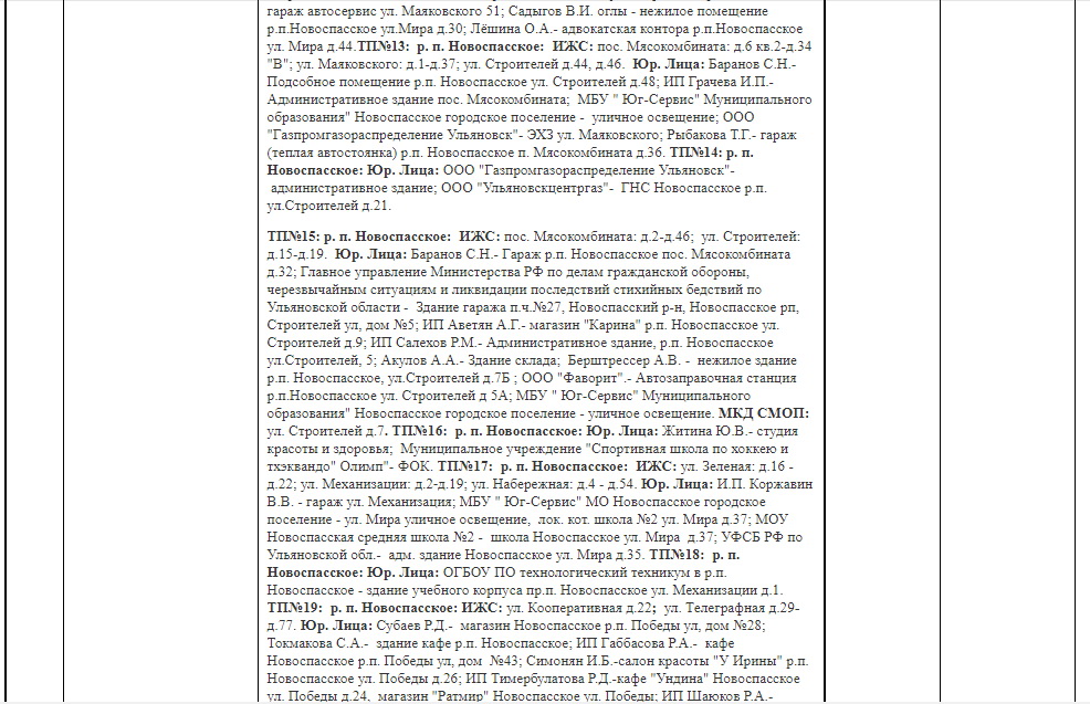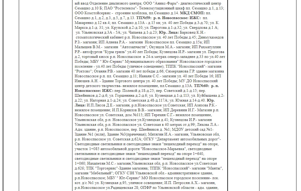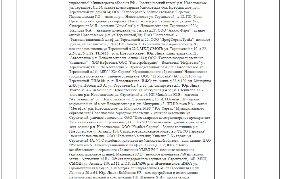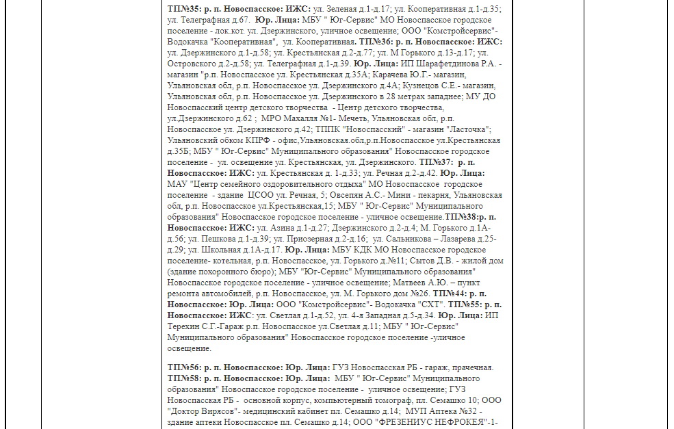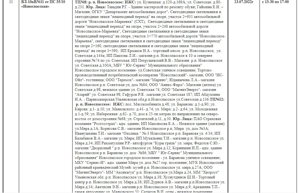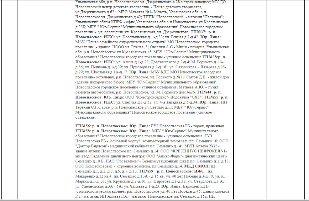 Планы ремонтов РЭС Новоспасского района для проведения ремонтных работ