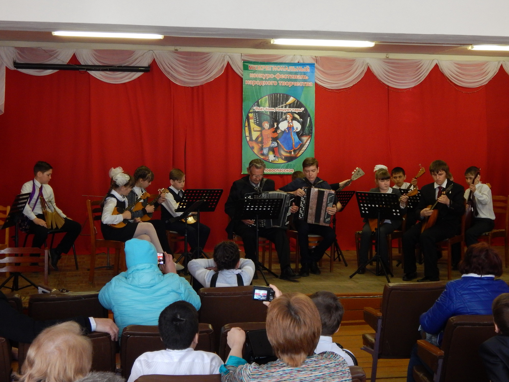 Оркестр народных инструментов «Родник», исполнивший р.н.п. «На зелёном, на лугу» в обработке В. Салина – Лауреат 1степени преп. Булкина О.П., конц. Малкин А.И.