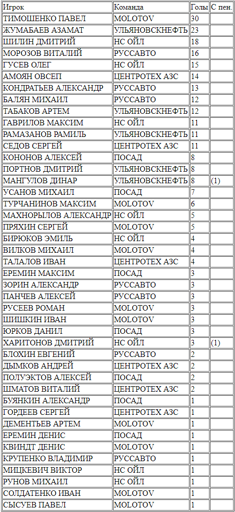 лучший вратарь - КРУПЕНКО ВЛАДИМИР (РУССАВТО) лучший защитник - БИРЮКОВ ЭМИЛЬ (НС ОЙЛ) лучший бомбардир - ТИМОШЕНКО ПАВЕЛ (MOLOTOV) MVP турнира - ЖУМАБАЕВ АЗАМАТ (УЛЬЯНОВСКНЕФТЬ)