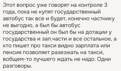 Конечно реакция жителей была предсказуема, мало того, что нет уже несколько лет второго маршрута, но уже становится традицией отсутствие вообще автобусного сообщения на новогодние праздники (в прошлом году автобус так же не курсировал в праздничные дни). Но и ещё один фактор повлиял на негатив пассажиров - рост стоимости проезда до 50 рублей. Как утверждают некоторые, Новоспасское по стоимости проезда приблизился к Москве, где зарплаты, в разы выше, чем в Новоспасском.