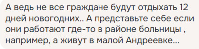 Информация о том, что городской маршрутный автобус (кольцевой) в новогодние праздники практически 12 дней будет отсутствовать на улицах райцентра, встретила негативную реакцию жителей. Приведём некоторые высказывания, сделанные в одной и соцстраниц портала: