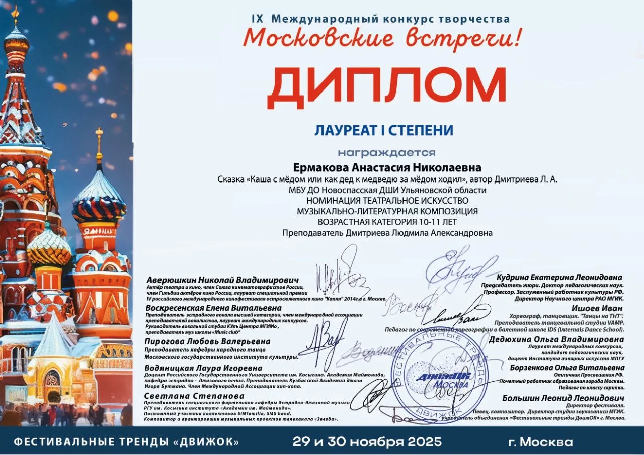Анастасия приняла участие в МЕЖДУНАРОДНОМ КОНКУРСЕ-ФЕСТИВАЛЕ "Московские встречи"