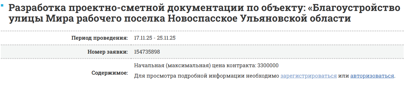 Администрацией района объявлен тендер на разработку проектно-сметной документации по объекту: «Благоустройство улицы Мира рабочего поселка Новоспасское.